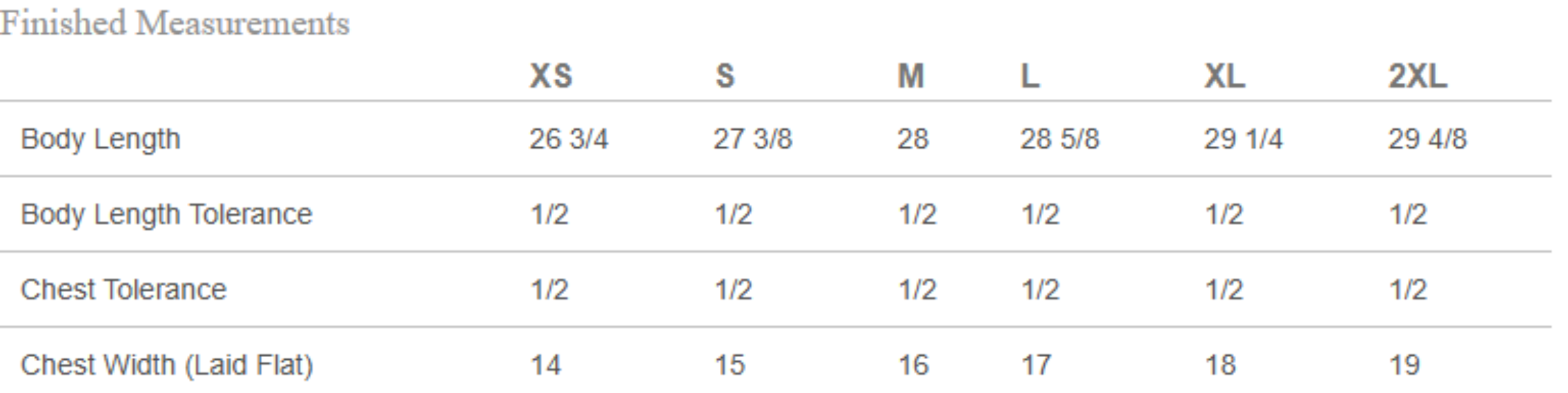 Sizes: XS, S, M, L, XL, 2XL